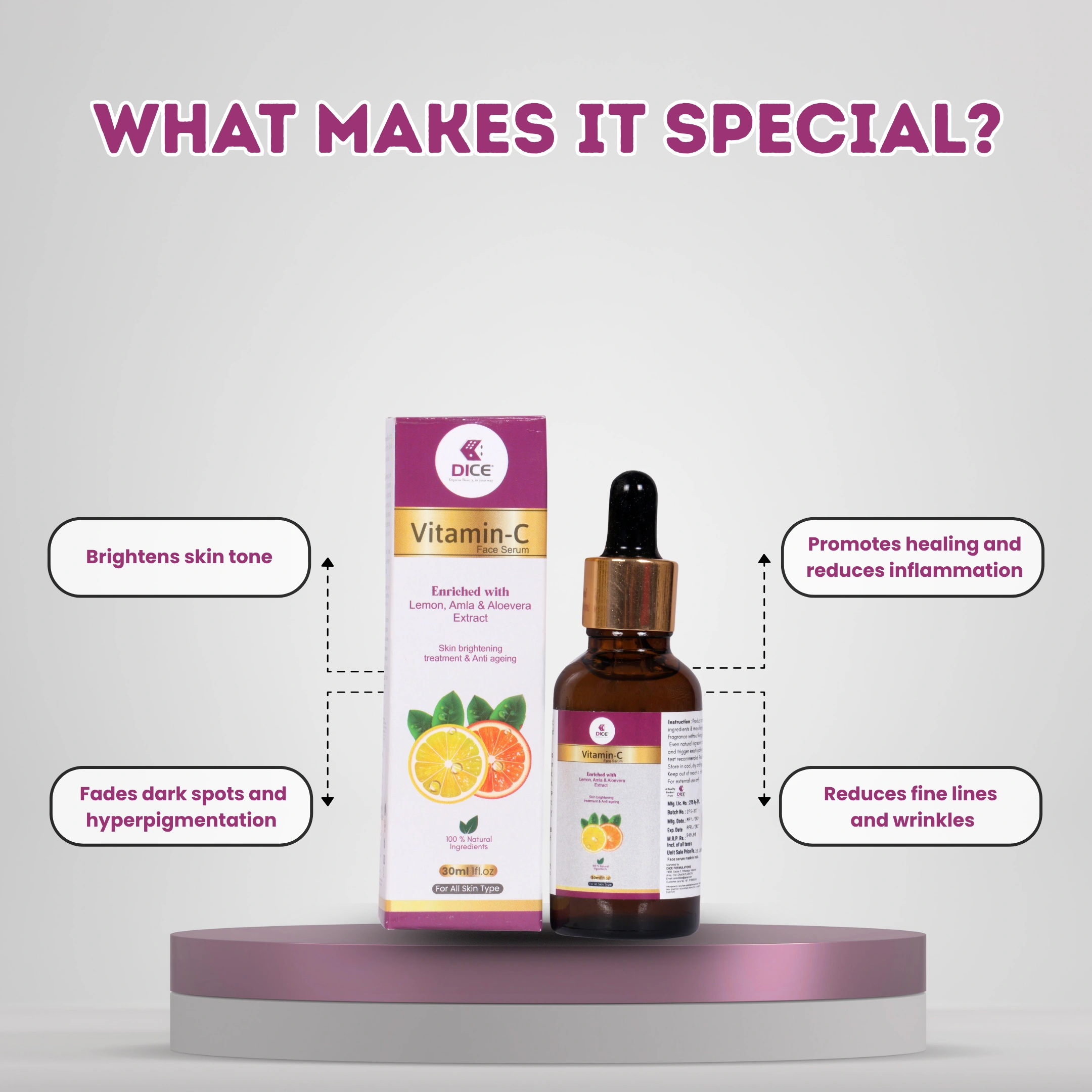 • Fade dark spots & hyperpigmentation with Dice Vitamin-c serum